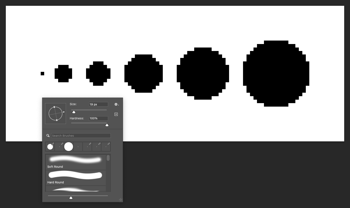 Photoshop’s Brush Tool might be great for painting, but it adds softness you don’t want in pixel art. Instead, grab the Pencil Tool — it places pixels with single-pixel precision and gives you clean, hard edges.
