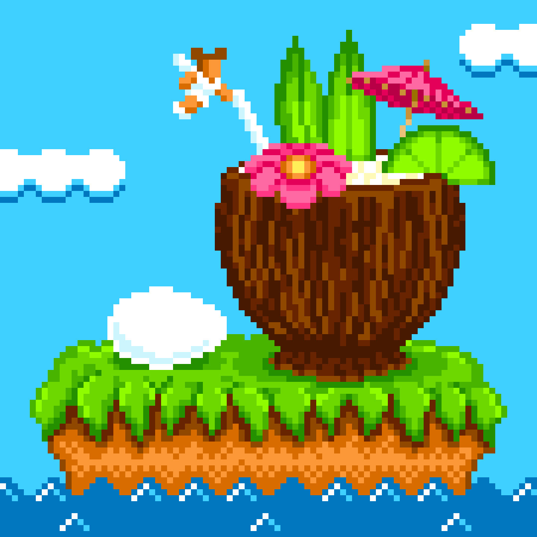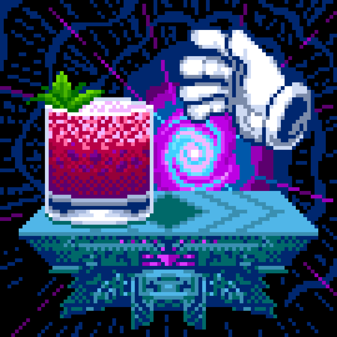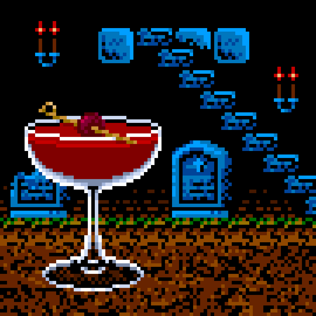 When he’s not crafting pixel art, Jude enjoys conducting craft cocktail experiments in his elaborate home bar. An amateur mixologist with a taste for nostalgia, he frequently looks to his favorite classic video games for inspiration. The result is 8-Bit Cocktails, a collection of playful pixel art illustrations that reimagine these drinks through the lens of classic Nintendo and Sega adventures.